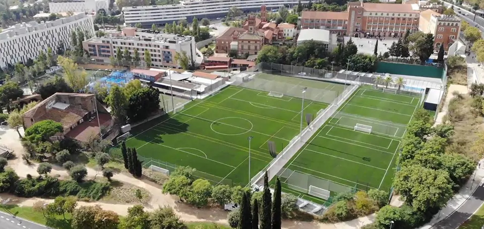 Jugamos en canchas céntricas de Barcelona, accesibles y rodeadas de buen ambiente internacional.